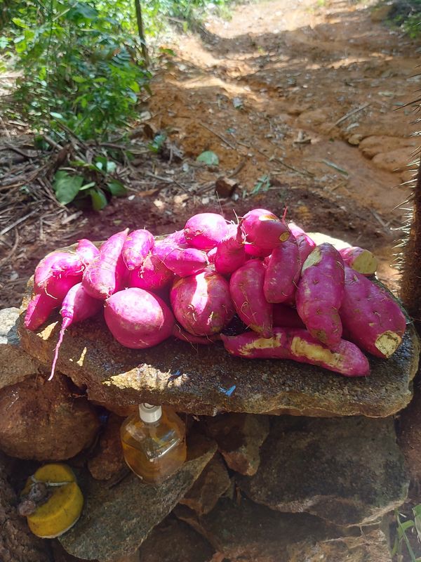 Batata doce sintrópica, sem agrotóxico, produzida junto com floresta amazônica, 2025.